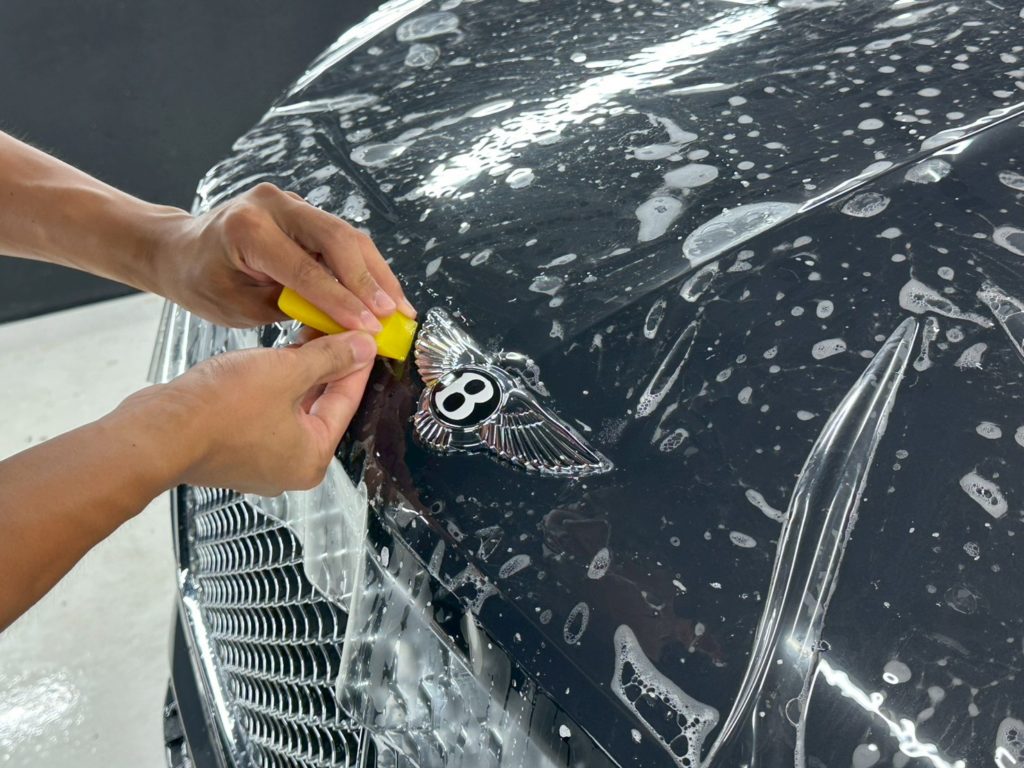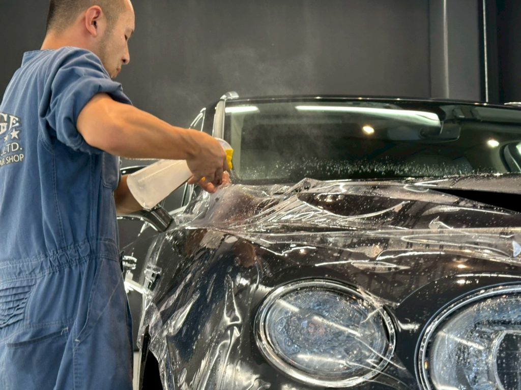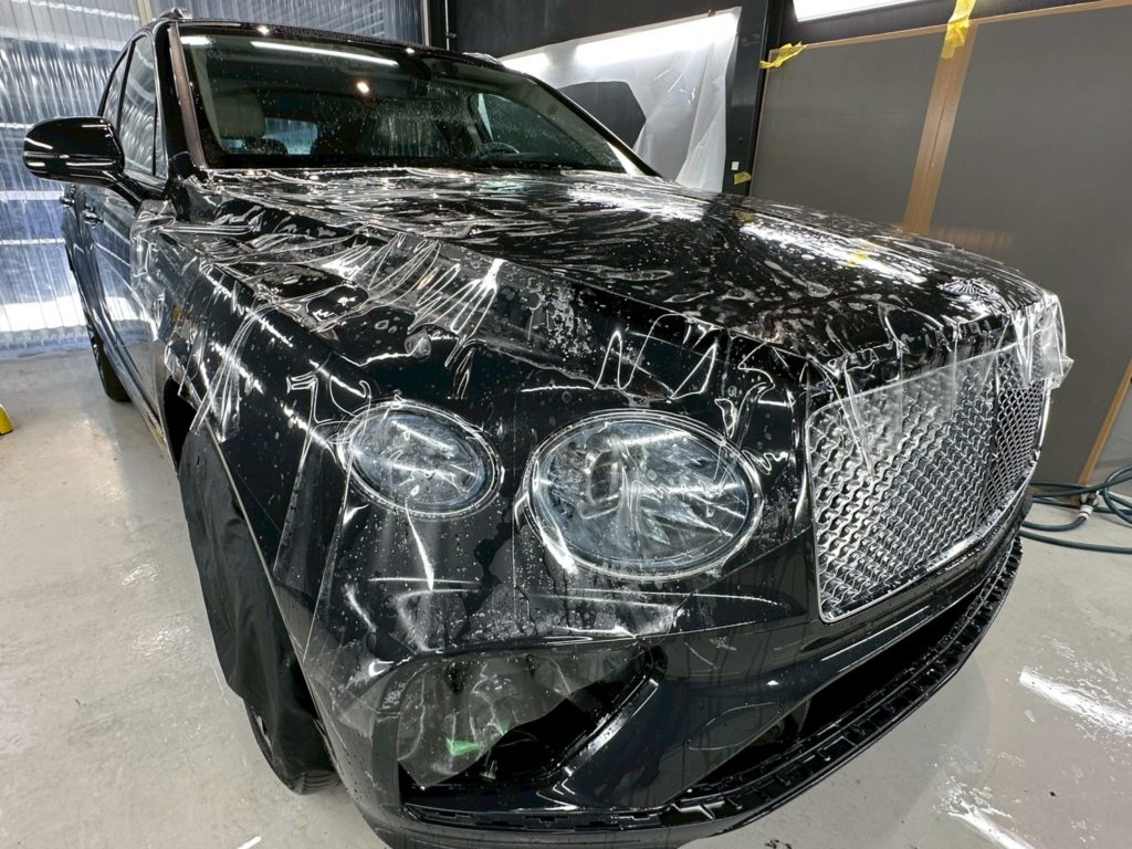 ベントレーは曲面やラインが多いため、ミリ単位で面を整え、周囲のパネルとのつながりを意識することが仕上がりのポイントになります💡